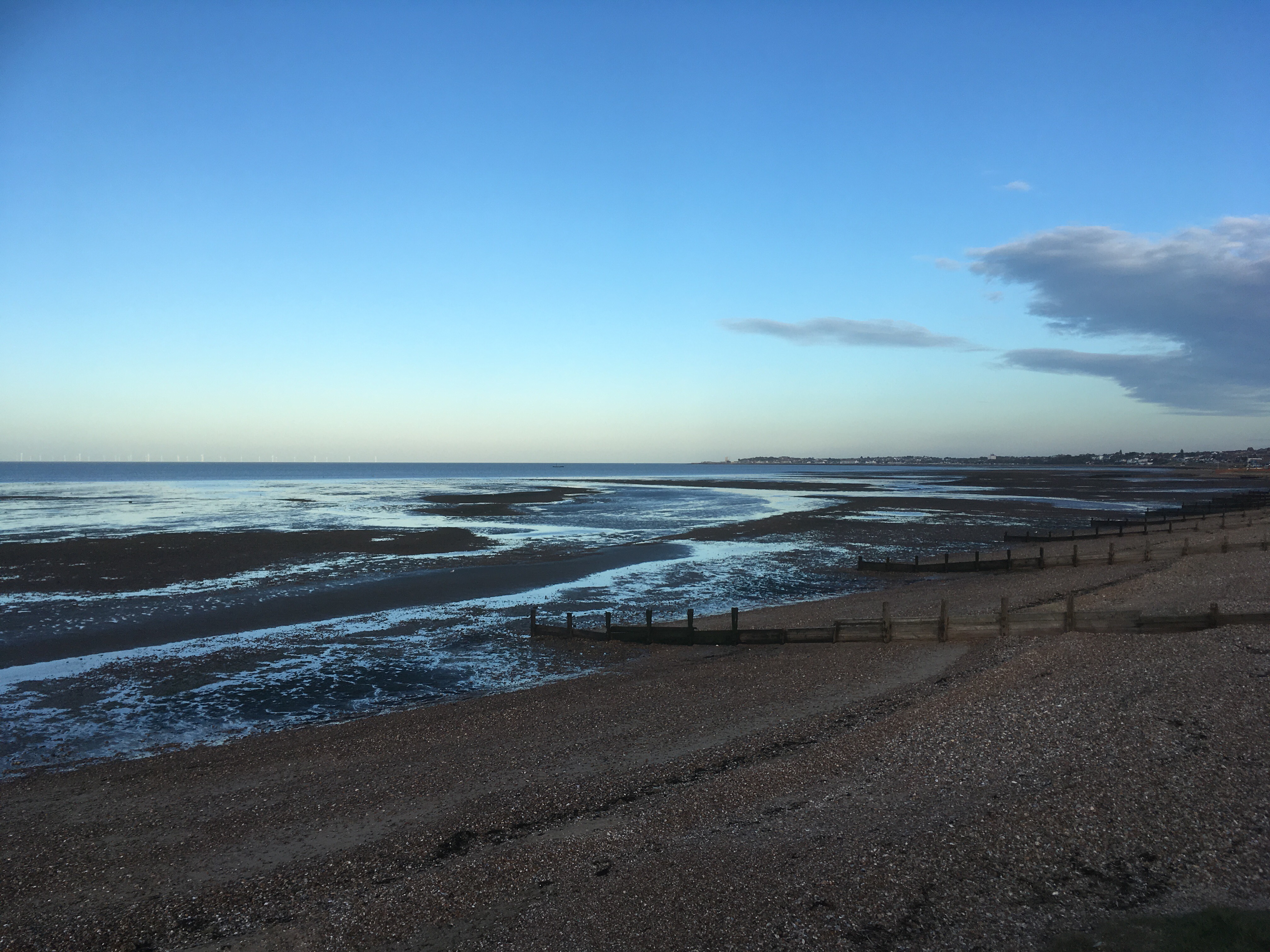 On from Whitstable and towards Herne Bay I don’t remember much. The sun was going down and the estuary was bathed in a subtle light where the groynes and the pebble beaches spoke of oncoming winter and stormy times ahead.
