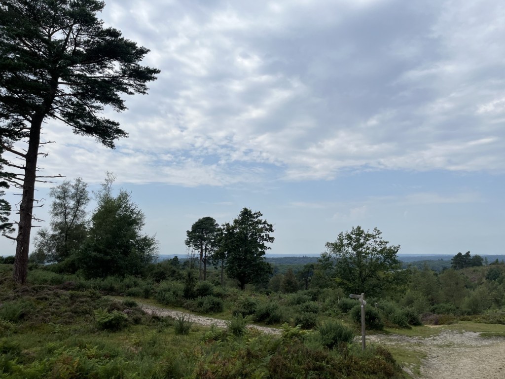 It was time to move on. Whilst the spot implied that it was the highest point, I noticed that the land rose up through some trees to the west. I picked my way through the woods and eventually concluded that if I wasn’t actually at the highest point, there was nothing nearby to indicate anything higher. I carried on through trees and then back onto open heathland where a bench presented itself and I sat for a bit and took in the enticing views west. If I was to carry on with the project, to climb to the highest points in each county, I was now going to have to take on some longer journeys, and at least ten of them were somewhere in the general direction of my line of sight.