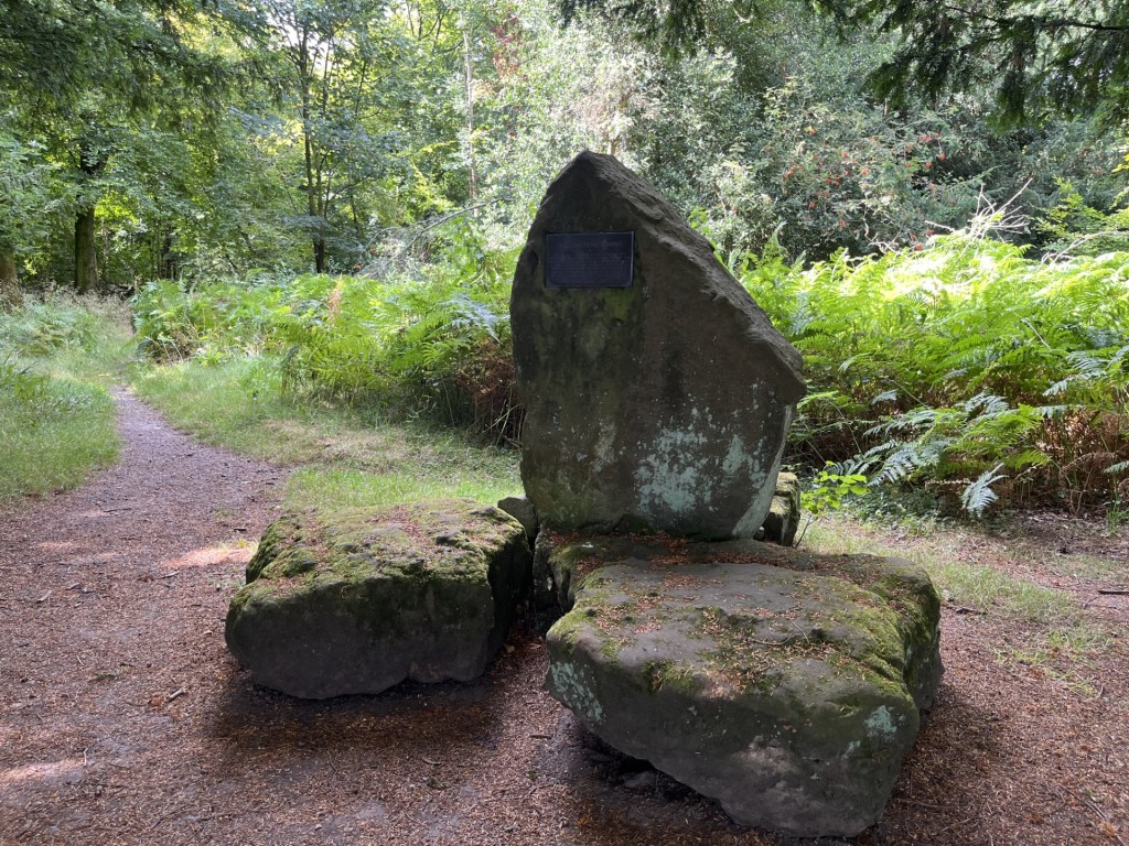 I’d opted for the T-shirt n’ shorts look for the day’s tramp, and after donning the walking boots I set off with a 1983 Ordnance Survey Landranger map, a bottle of water, sunglasses and a sun hat. I walked to the very modern and attractive restaurant/coffee shop, found my bearings and walked east and onto the exit road from the car park. Woods of mainly beech stretched away in all directions. After just a couple of minutes, and just before the barrier gates that released the cars that had paid, a break in the fence and a small track led into the forest on my left. A sign indicated that the full path was closed due to trees presenting danger, but that it was still possible to access the cairn. A cairn? Sounded impressive. I looked forward to the sweeping views across Buckinghamshire.