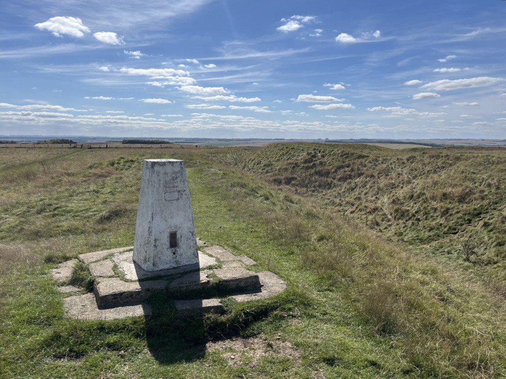 The trig point stood at the top of the eastern rampart of the deep ditch (the terminology used here is likely dubious). The earthworks on the other side of the ditch seemed to be marginally higher, though surely that was just a trick of the eye. I clambered over and at the top was able to get the full view of the ancient structure. I have no expertise in these areas, but even to my untrained eye, the huge expanse of ground that lay within the single, broadly circular ditch and earthworks, was quite obviously not a defensive structure. Whilst the ditch would have been deeper and the earthworks higher, to describe it as a castle or hill fort is fundamentally misleading, but possibly increases tourist numbers. Even imagining a wooden fenced structure around the perimeter left me in no doubt that trying to defend this huge area would have been a completely pointless exercise.