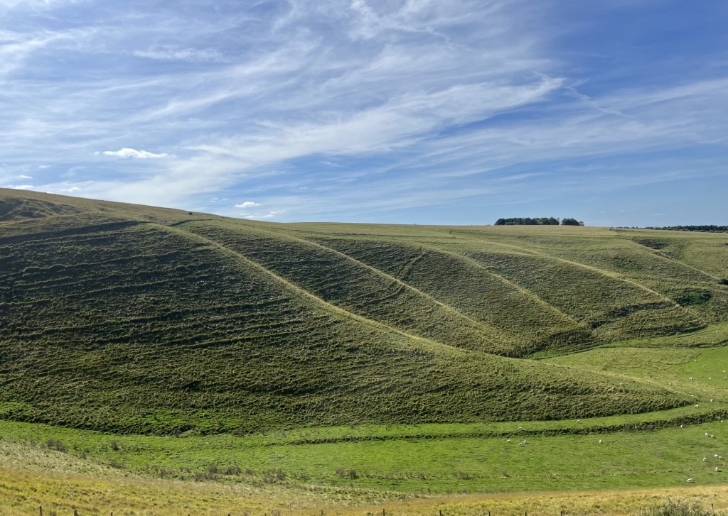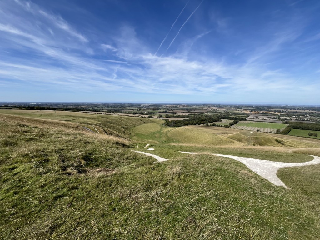 I left the hill slightly disappointed. It was obvious that this exceptional work of art wasn’t going to reveal itself when up close and personal, and that being able to see it in its entirety was probably only possible from the Vale to the north. On the plus side, a chalk ridge, its scarp slope wave-like notches formed in the ice-age, curved away to the west to dramatic effect.