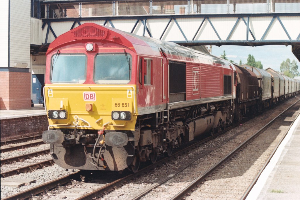 *A red Class 66. Hereford Station – Oct 2024 – Other colours are available