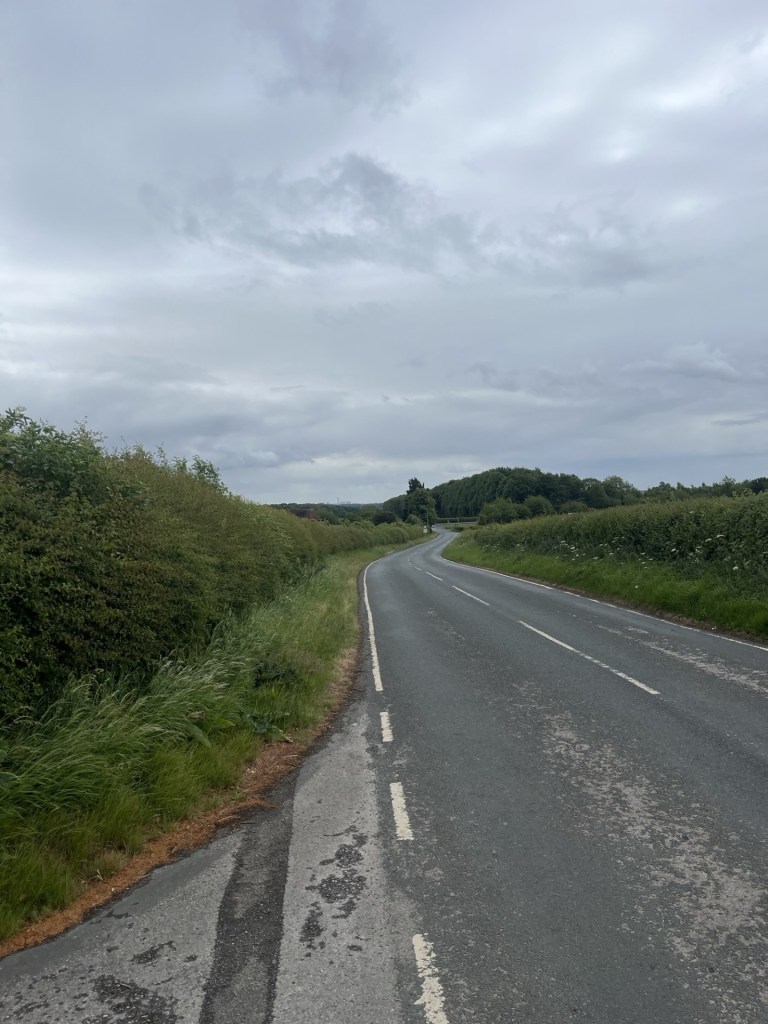 I pulled off at the Askham Bryan junction and before long was driving along random lanes in what I considered to be a westerly direction. When I had planned to do this three days earlier, on my way up (you’ll have probably forgotten by now that I had missed junction 44), the approach to the high point would have been straight forward. A left turn off the A64 at The Buckles Inn and Bob would have been my uncle. Unfortunately, as the A64 is a dual carriage way, and there is no right turn from the east at The Buckles Inn, I’d had to come off a mile or so beforehand. Of course, I didn’t possess the necessary in-car tech to get me out of this labyrinthine pickle, but I knew that if I just kept driving with a left, left, left attitude I’d get to where I belonged. *