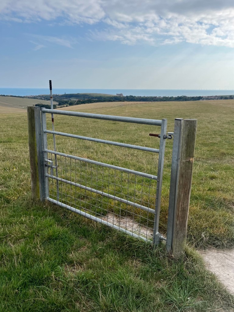 It all looked pretty straightforward. Follow the path and head on down. At the end of the first field a walker friendly gate gave access into a much bigger field which rolled away on all sides. The only slight concern was a sign to the side of the gate proclaiming private property. That’s as maybe, I thought, before setting off on what felt like a path. After about five minutes I came to another of what appeared to be a recently installed gate. It sat at the end of a few low hawthorn trees and quite literally on its own.