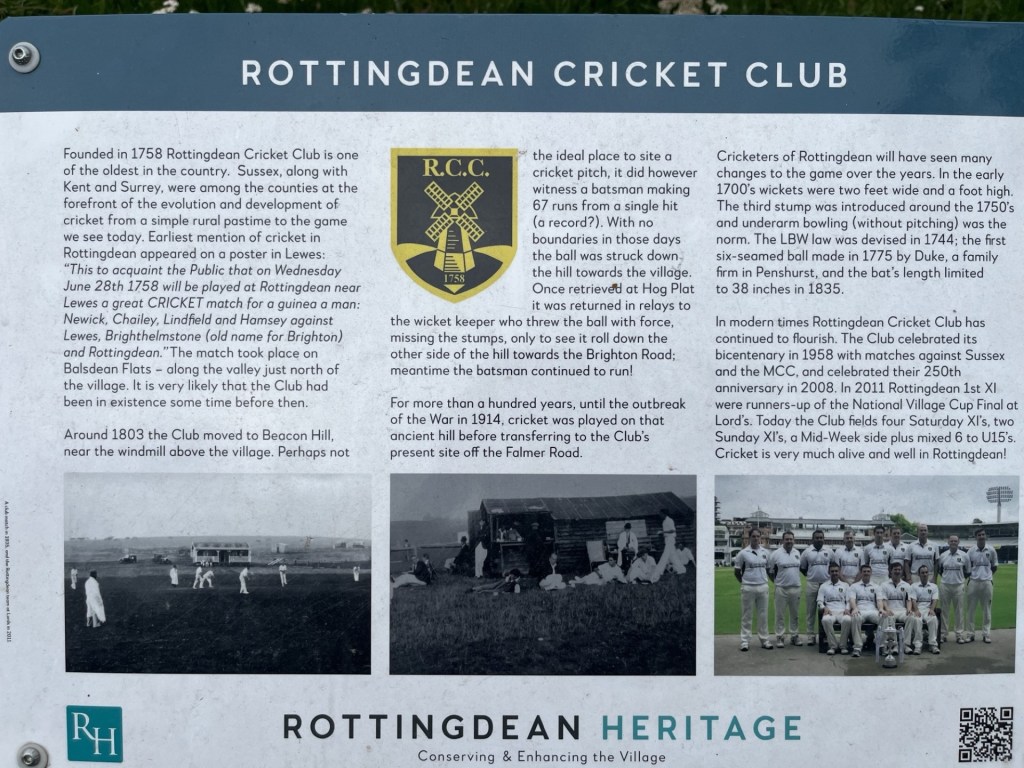 Continuing south and back on the Falmer Road, I started into Rottingdean. On the left cricket was being played on a pitch that made the slope at Lords look like a salt flat. A sign at the side of the road explained the history of the Rottingdean Cricket club and a little-known fact that the highest score ever run off a single delivery was made on a nearby older ground. For the record it was 67; after the ball had ended up rolling down the high street and before the introduction of boundaries. When the ball eventually arrived back at the wicketkeeper, he missed the stumps and the ball then set off down another street. There’s a metaphor here for something or other.