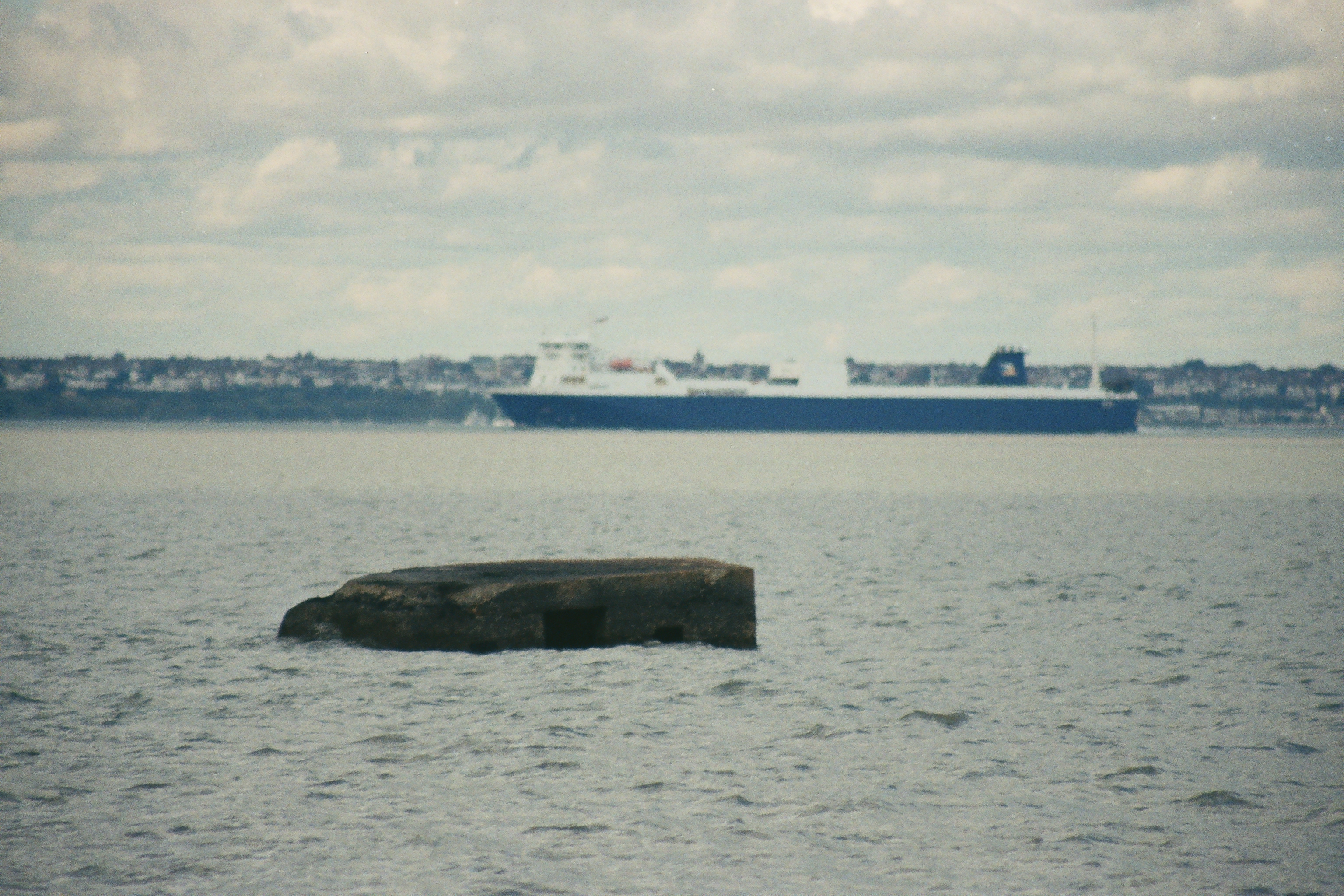 I bumped down Cliff Drive, which seemed to be the most obvious thing to do, but it petered out near the edge of the cliffs and became nothing much more than a glorified path. I was able to continue with some care and a bit further down a sign erected by the Council stated that the road was closed and liable to cliff erosion. I stopped again, and looked out to sea. On the horizon, and for the first time that I can recall, I could see the slightly unreal Maunsell fort structures that had been erected in the Thames estuary in the War to protect the channel and spot in-coming air raids. I got the camera with the long lens out and clicked in the hope that something would come out. Well, it did, but rather as expected (the sun had stopped shining by this time and it was somewhat gloomy), the developed result was a tad disappointing and not worthy of inclusion, but here’s a surrealistic representation instead.