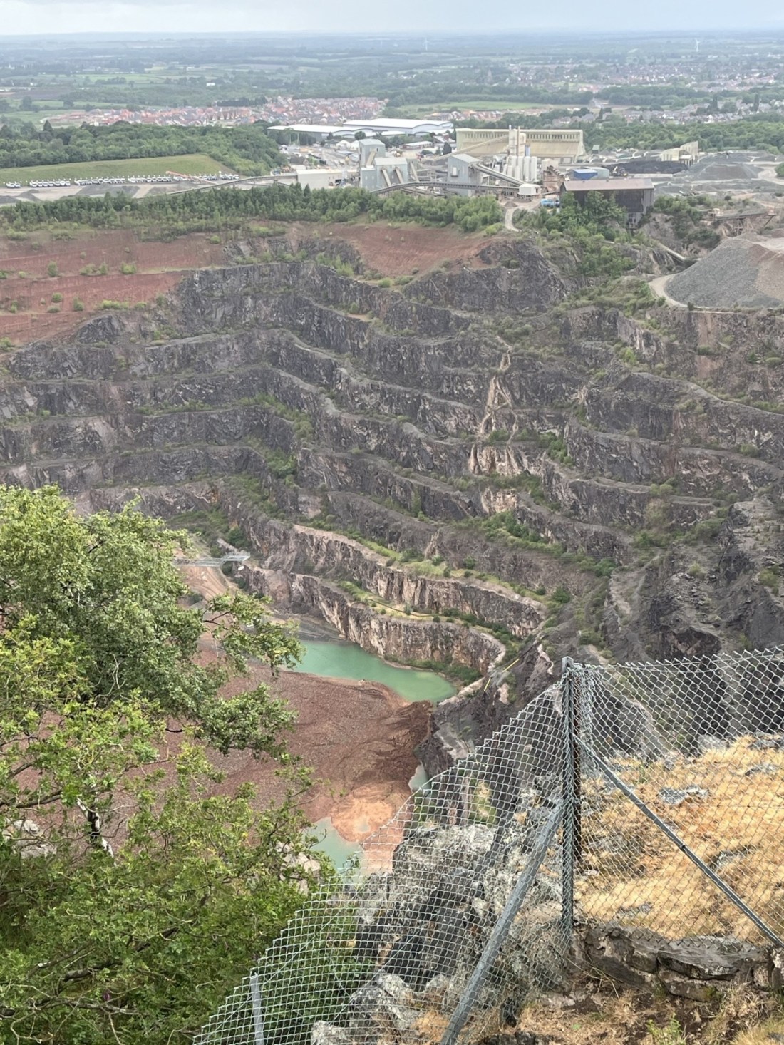 Clambering to the very top the view of the quarry was fully exposed, and despite its devastating impact on the hill, bleakly impressive. There was no sign of the Malvern Hills seventy miles to the south-west, but there was a battered information board, that by deduction must have been installed around thirty years earlier, given a reference (top left) to the “recent eruption at Montserrat, West Indies”. 1995 for the record.